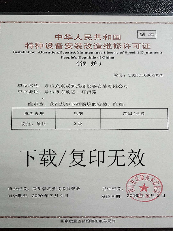 眉山眾宸鍋爐成套設(shè)備安裝有限公司成立于2010年,座落于四川省、眉山市,這里風(fēng)景秀麗、交通方便、信息暢通,是一代文豪蘇東坡的故鄉(xiāng)。 公司設(shè)有與鍋爐安裝維修、壓力管道安裝有關(guān)的行政職能部門(mén)4個(gè)(公司辦公室、經(jīng)營(yíng)部、工程部、質(zhì)量技術(shù)部) .現(xiàn)有員工32名,其中工程技術(shù)人員7名,持證焊工11名,無(wú)損檢測(cè)人員1名、鍋爐調(diào)試人員2名,公司人員的配備涵蓋了焊接工程、機(jī)械工程等專(zhuān)業(yè)。公司從管理層到作業(yè)人員,都是多年從事鍋爐安裝施工的現(xiàn)場(chǎng)項(xiàng)目經(jīng)理、項(xiàng)目質(zhì)量與專(zhuān)業(yè)技術(shù)人員及持證焊工、起重工等